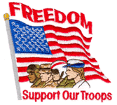 I/We, Trevor, Lorna, Lauren and Nicholas Conquergood, the entire Conquergood family and Stitchitize staff, from Saskatoon, Saskatchewan, Canada, hang this yellow ribbon in support of the troops.