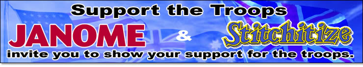 Janome America supports the Coalition Troops and their efforts. We are looking forward to their safe return home. Help us in our efforts to show support by hanging your virtual ribbon next to ours.